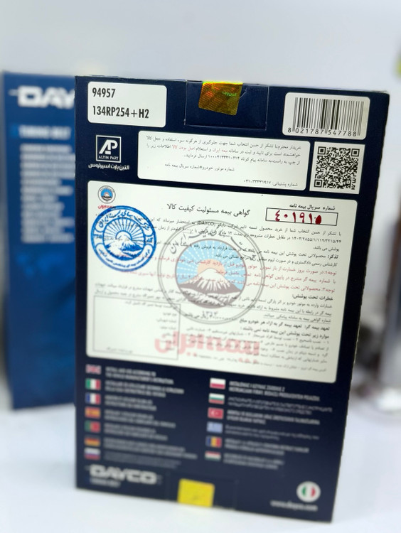 تسمه تایم دایکو تیپ ۵/ ۱۳۴دندانه با بیمه ایران ساخت ایتالیا با لیبل آلتین پارت