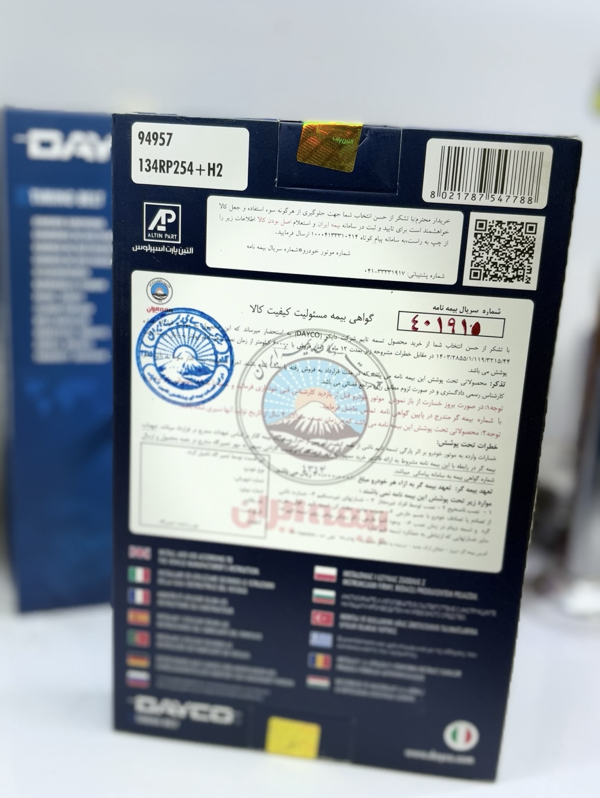 تسمه تایم دایکو تیپ ۵/ ۱۳۴دندانه با بیمه ایران ساخت ایتالیا با لیبل آلتین پارت